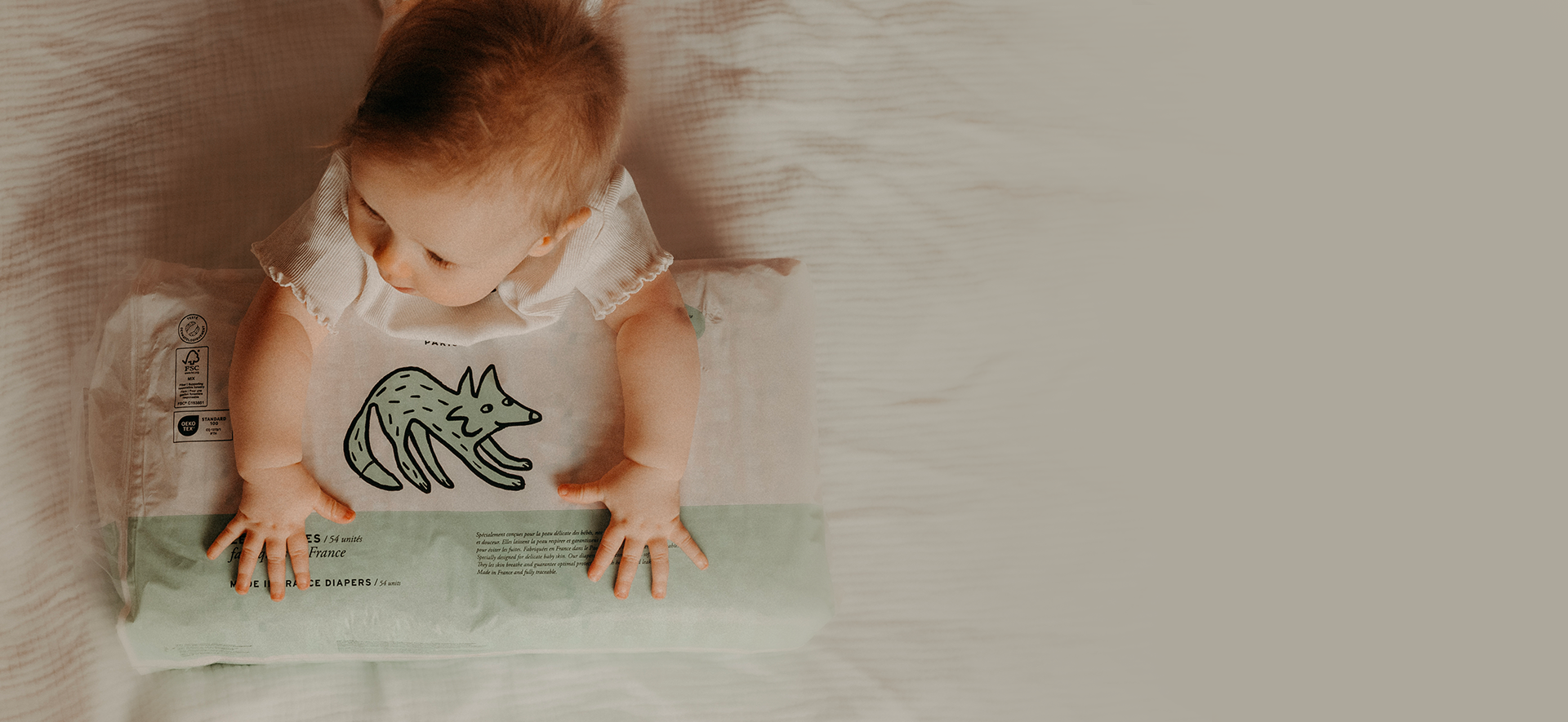 La transparence est notre priorité. Nos couches sont garanties sans latex, sans lotion et sans parfum. Elles ne sont pas blanchies au chlore (TCF) et disposent d'un voile en contact avec la peau 100% d'origine naturelle. Certifiées FSC® Mix et Oeko-Tex® Standard 100, elles sont pensées pour respecter la peau fragile des bébés.
