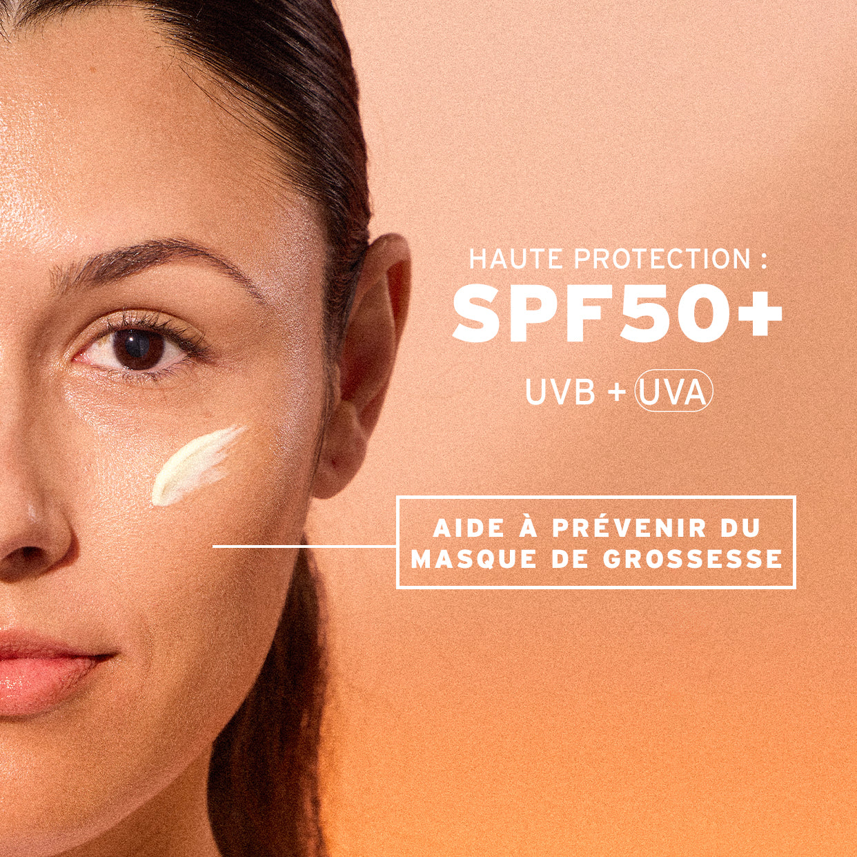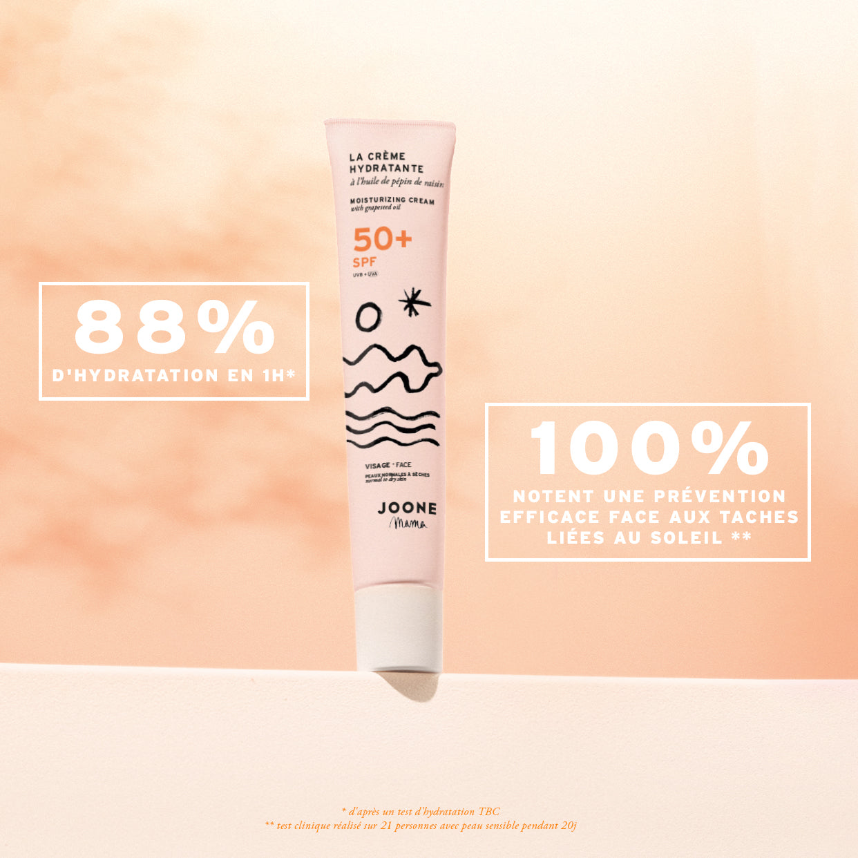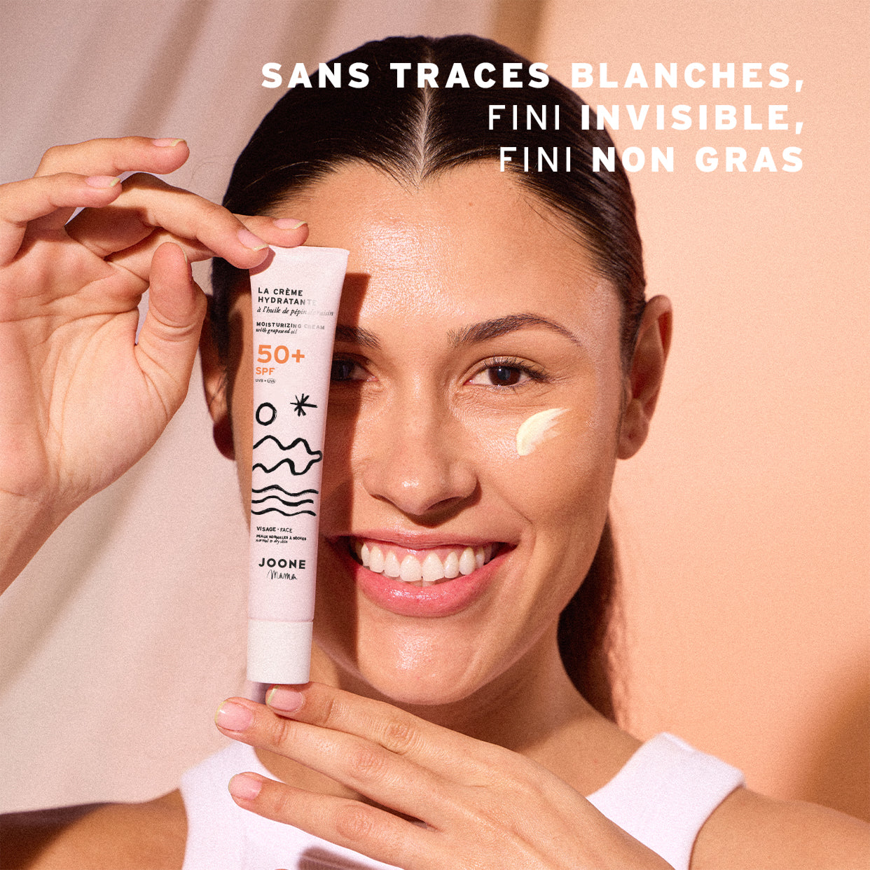 La crème hydratante SPF50+ est formulée à partir d’actifs clés, sélectionnés avec soin dont 79,4%d’entre eux sont d’origine naturelle. Elle a une odeur subtile de notes fruitées afin de rendre son application encore plus agréable.